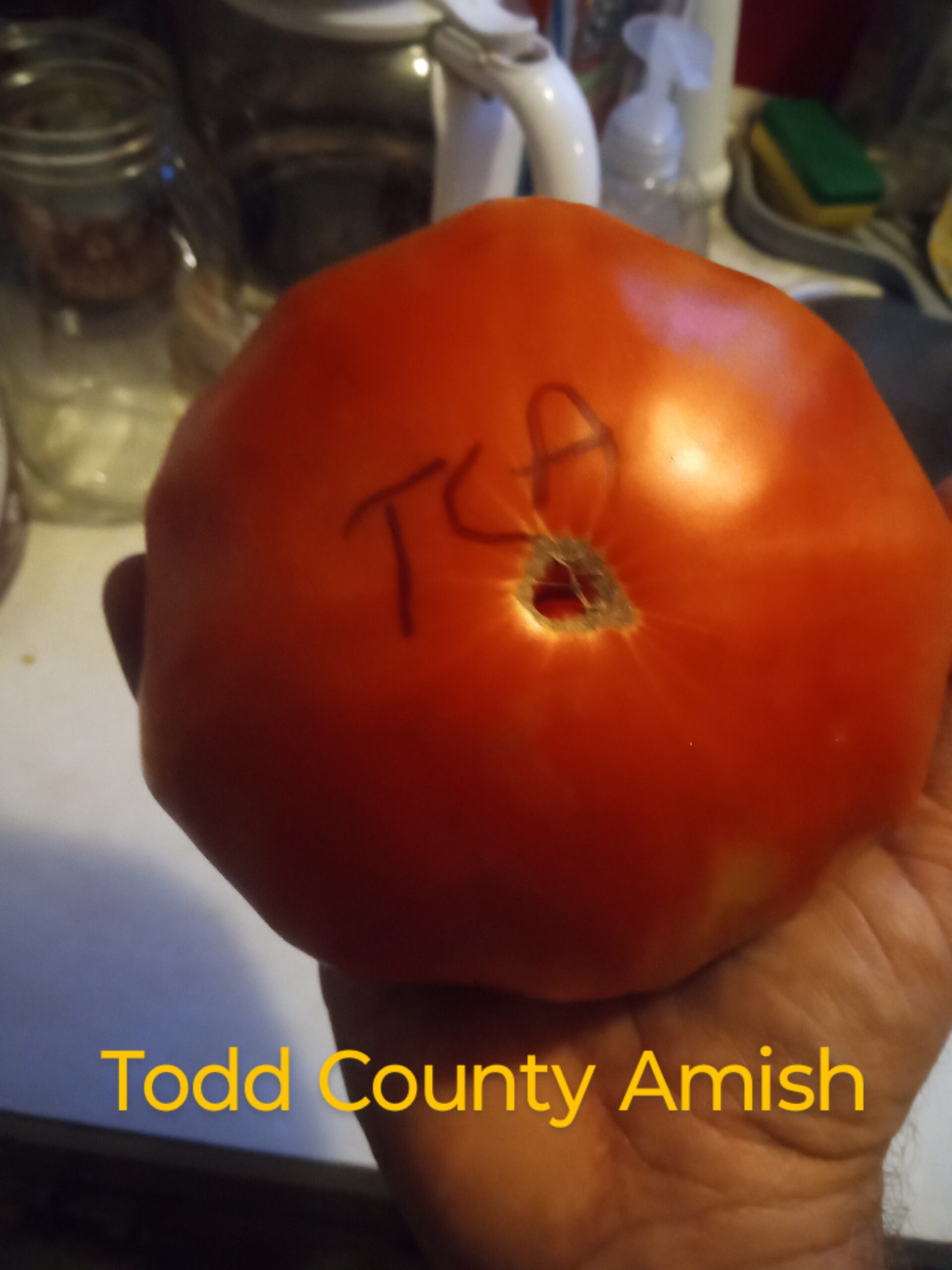 Everybody wants a big tomato to slice for sandwiches. I get asked that at almost every plant sale that I have. This variety will not disappoint you! I wasn’t too sure when I first started raising this one how it was going to be, until it started producing it’s fruits and I was impressed with the size and how many a single plant could produce in one season! If you are like me and love a thick slicing tomato on toasted honey-wheat bread with mayo, you’re going to love this one with its great taste, thin skin and few seeds.